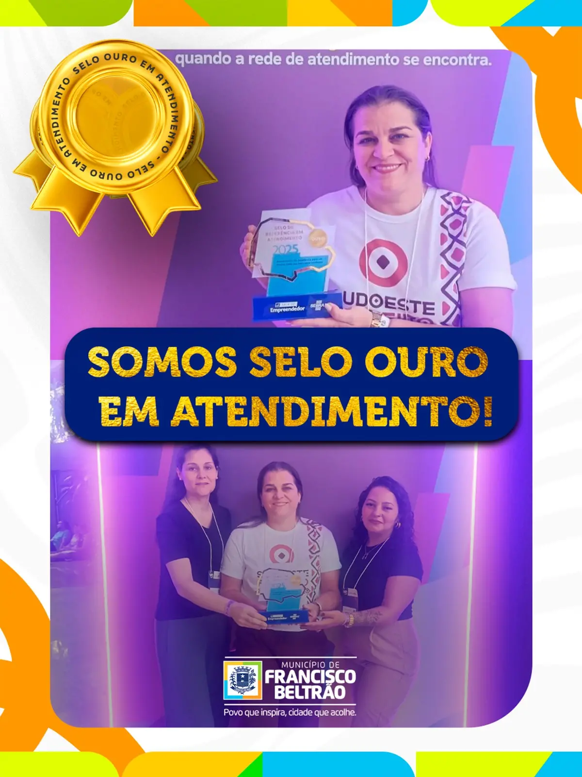 Para a secretária municipal de Indústria, Comércio, Serviço, Emprego e Turismo, Flaviana Tubin, a conquista do Selo Ouro reforça a qualidade do trabalho desenvolvido pela administração municipal. “Na semana passada, durante um evento em Foz do Iguaçu, a Sala do Empreendedor de Francisco Beltrão foi contemplada com o Selo Ouro de Referência em Atendimento 2025. Esse selo é concedido pelo Sebrae às instituições que se destacam pelo trabalho desenvolvido, a partir da avaliação de diversos critérios, como agilidade, qualidade no atendimento, eficiência na resolução de problemas e clareza nas orientações”, destacou.