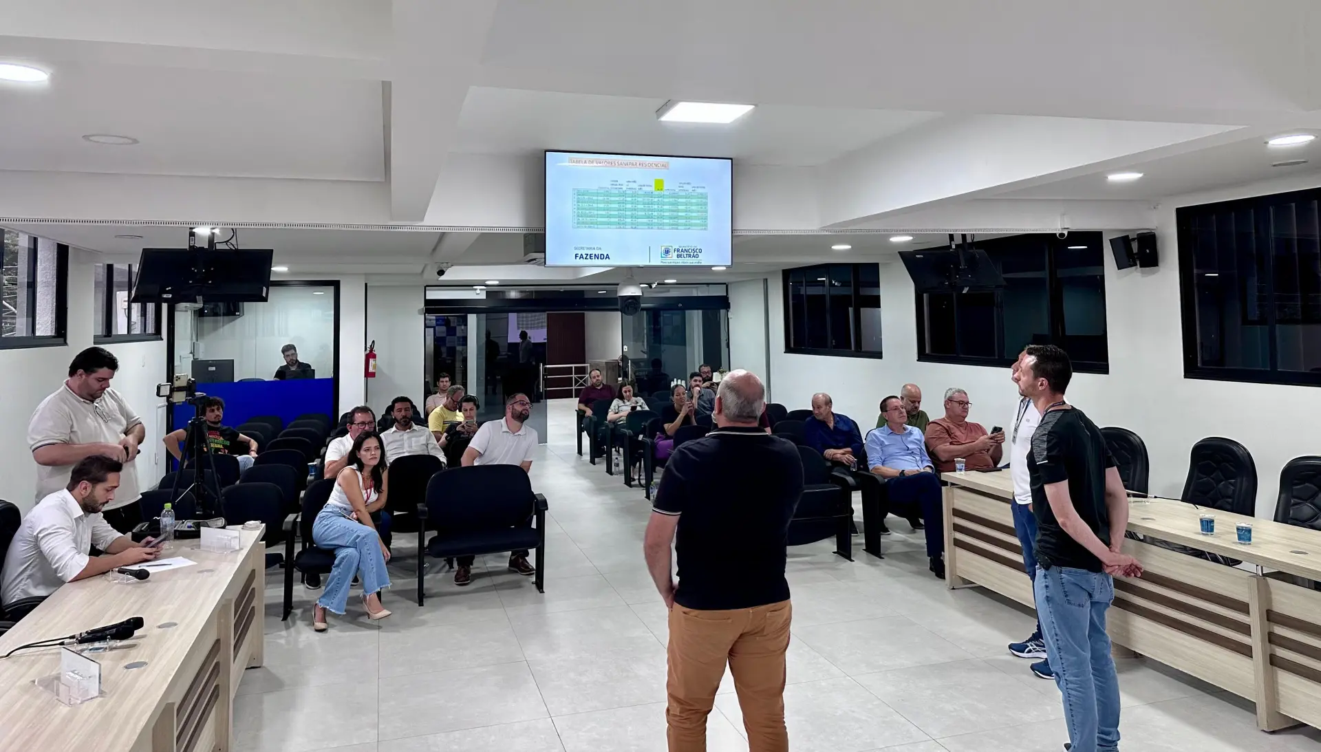 Na tarde desta sexta-feira (20), a Câmara de Vereadores de Francisco Beltrão sediou uma reunião pública para esclarecer dúvidas sobre o novo formato de cobrança da taxa de coleta de lixo. O debate contou com a participação do prefeito Antonio Pedron, vereadores, representantes da Sanepar, secretários municipais e da imprensa.