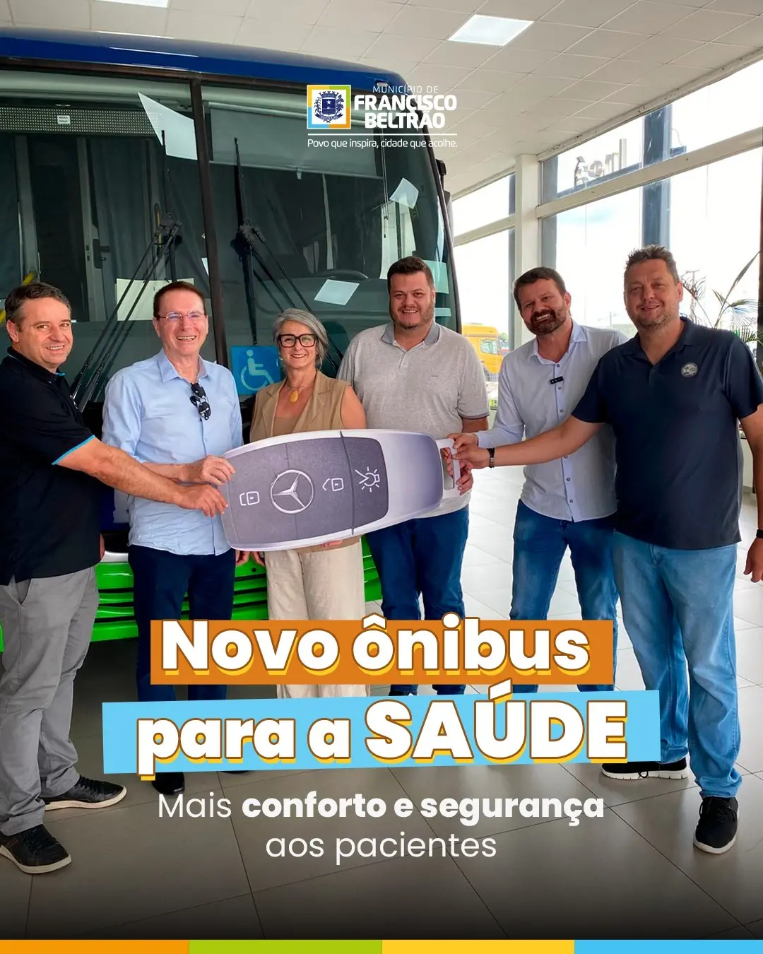 Com a entrega do novo ônibus, Francisco Beltrão encerra 2025 avançando na ampliação da frota da Saúde, fortalecendo o transporte sanitário e reafirmando o compromisso com o cuidado às pessoas, projetando um 2026 ainda mais focado em qualidade de vida e atenção à população.