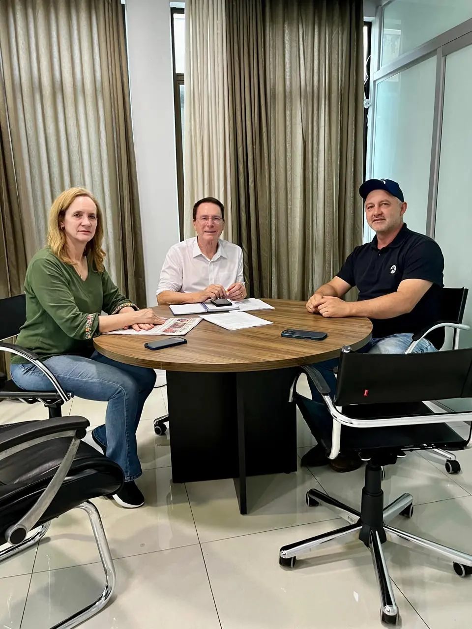 O prefeito de Francisco Beltrão, Antonio Pedron, recebeu em seu gabinete o produtor de leite Maciel Comunello e a secretária municipal de Agricultura, Denise Chiapetti Adamchuck, em apoio ao movimento Grito do Leite, que reúne produtores da cadeia leiteira em mobilização nacional por medidas urgentes de proteção e fortalecimento do setor.